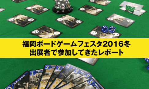 出展告知・報告 【出展レポ】福岡ボードゲームフェスタ2016冬に参加してきたぞ! 2019年1月28日Satochika DAIMON 2016年12月23日 福岡ボードゲームフェスタ2016冬に参加してきました(※公式サイトこちら)。当日の様子はKBC九州朝日放送でも放送されたようです。 グランドアゲームズの大門も、キャプテンダイスを引っさげて出展して…